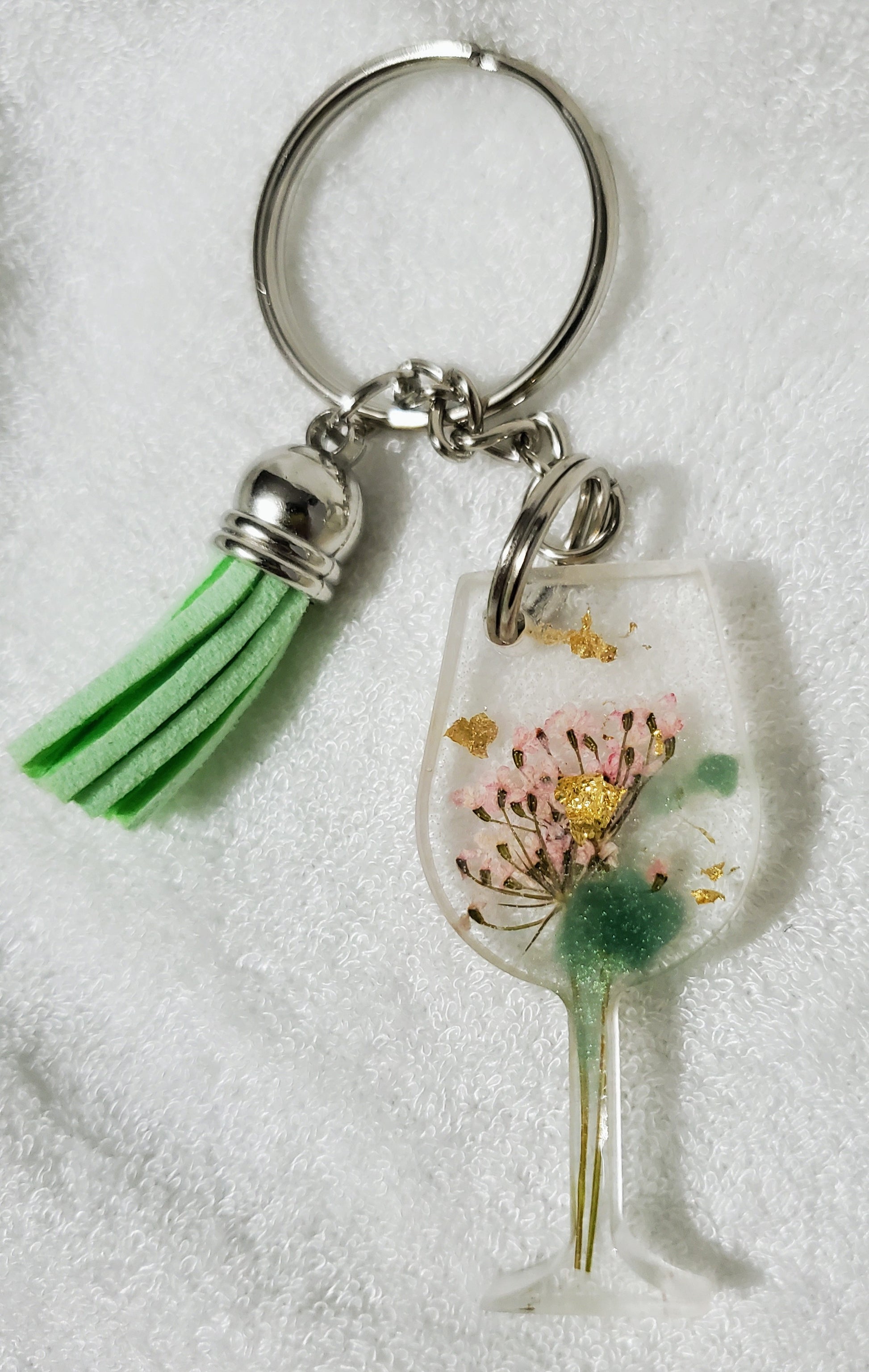 This Keychain is made of quality resin and real dried flower and some gold flakes.
